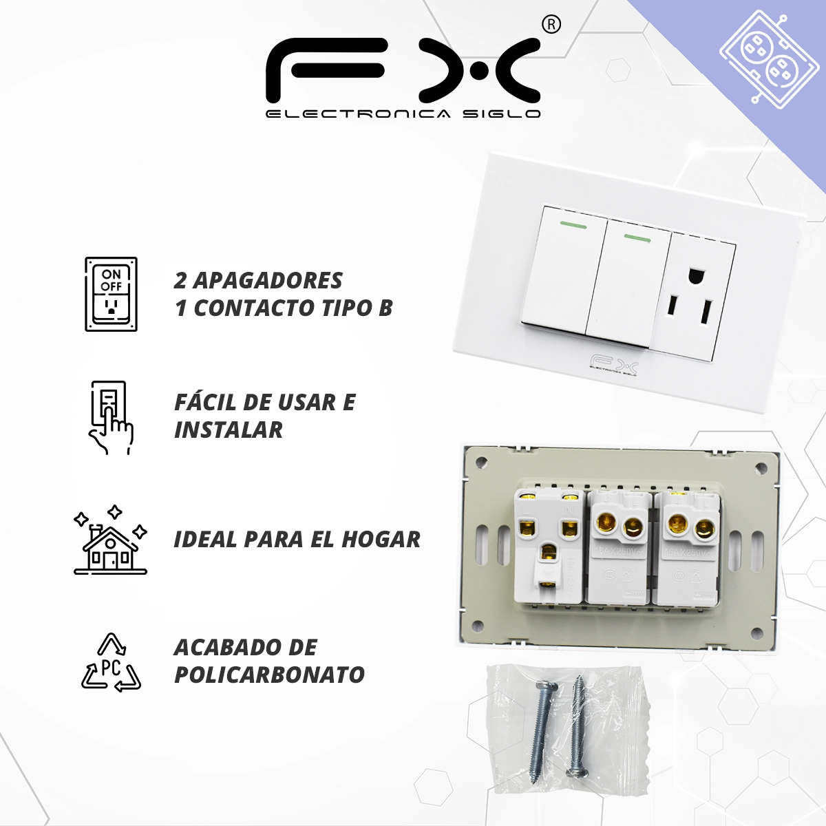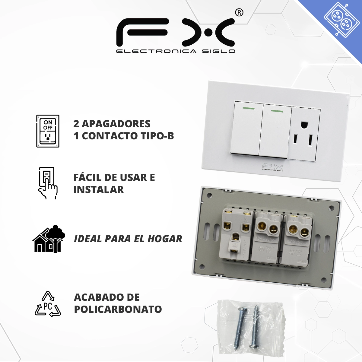 -Placa con 2 Apagadores y 1 contacto TIPO-B