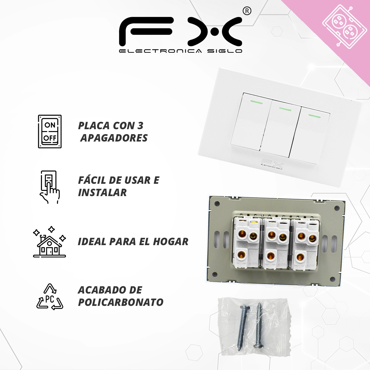 -Placa con 3 apagadores
